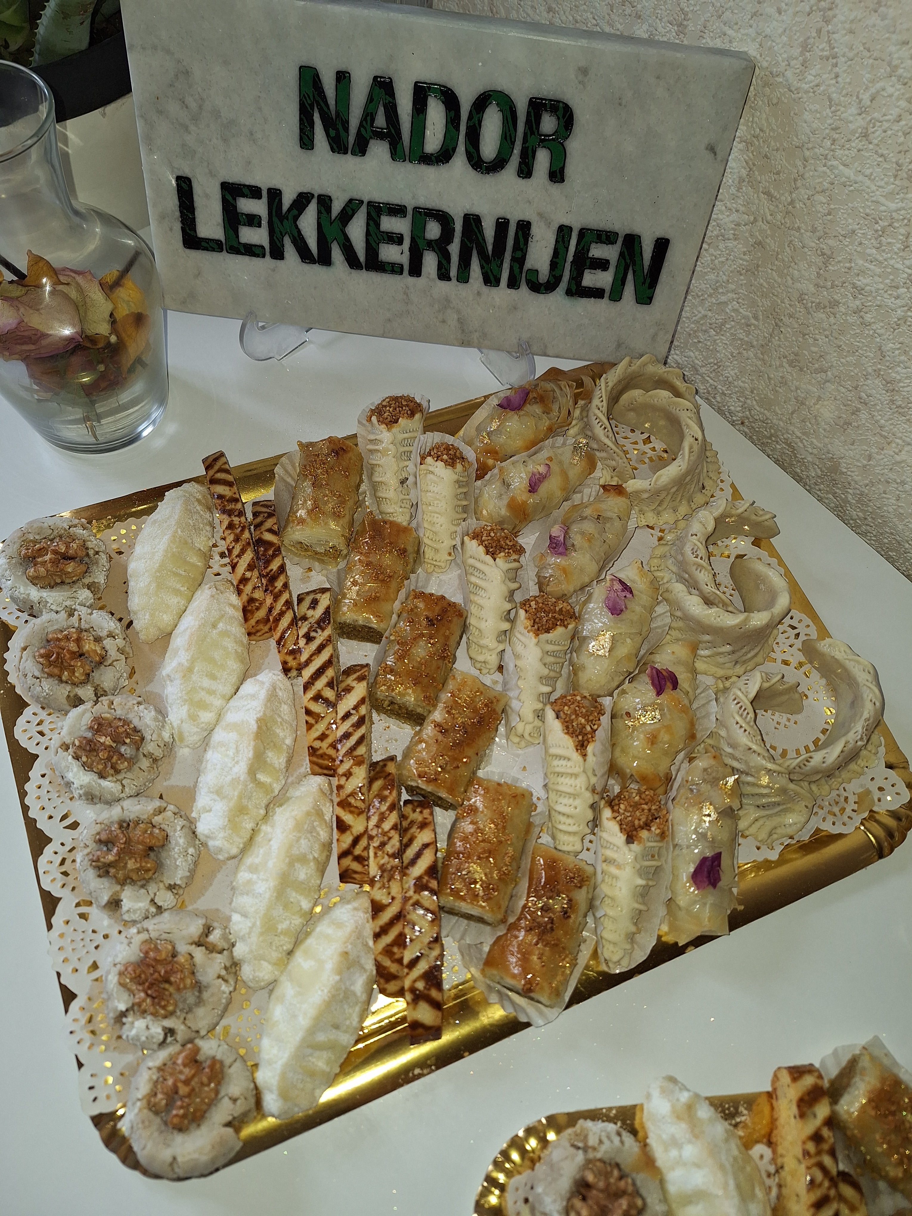 Welkom bij Nador Lekkernijen, gelegen in het hart van Turnhout aan Patersstraat 68, 2300 Turnhout. In onze warme en gezellige winkel verwelkomen wij je graag voor een heerlijk Marokkaans ontbijt, bereid met authentieke smaken en verse ingrediënten.Naast ons ontbijthuis zijn wij gespecialiseerd in het maken van thema-taarten op maat, perfect voor verjaardagen, feesten en speciale gelegenheden. Ook voor koekjes, hapjes en zoete lekkernijen kan je bij Nador Lekkernijen terecht. Alles wordt met zorg en passie bereid en kan op bestelling gemaakt worden voor jouw feestje.Wil je jouw gasten echt verrassen? Dan zorgen wij voor een prachtig en uitgebreid open buffet, stijlvol gepresenteerd en volledig afgestemd op jouw wensen.Bij Nador Lekkernijen draait alles om smaak, kwaliteit en gastvrijheid.Kom langs en laat je verwennen door onze lekkernijen.